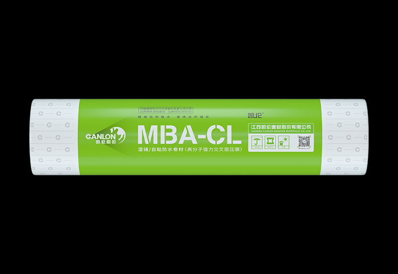 “凯伦”牌 MBA-CL高分子交叉层压膜自粘防水卷材(Migration- Blocking,Asphaltbased Waterproofing Membrane- Cross Laminated),是由强力交叉层压膜(高分子膜基)、自粘胶料和隔离膜构成,是一种拉伸强度和撕裂强度优良的无胎自粘防水卷 材。用于大量射钉穿透防水层时,该卷材具有良好的自愈性和较强的撕裂强度,避免钉眼部位的渗漏。