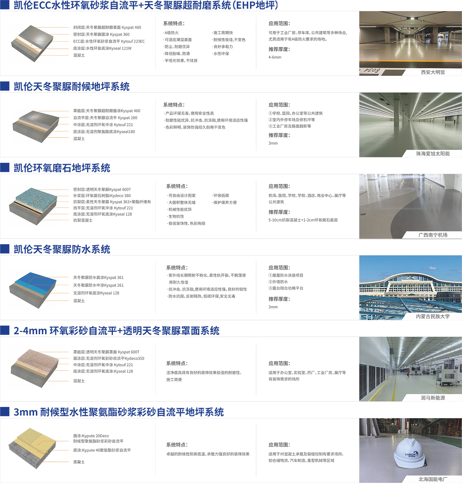 凯伦股份地坪解决方案根据使用者要求和不同使用环境的特点而提出。作为地坪行业系统化服务商,我们一直把绿色、环保作为企业的精神旗帜,在研发、生产、和施工的过程中身体力行,保证所使用的地坪材料均为无溶剂产品或者水性产品,用行动引领地坪材料的发展未来。
