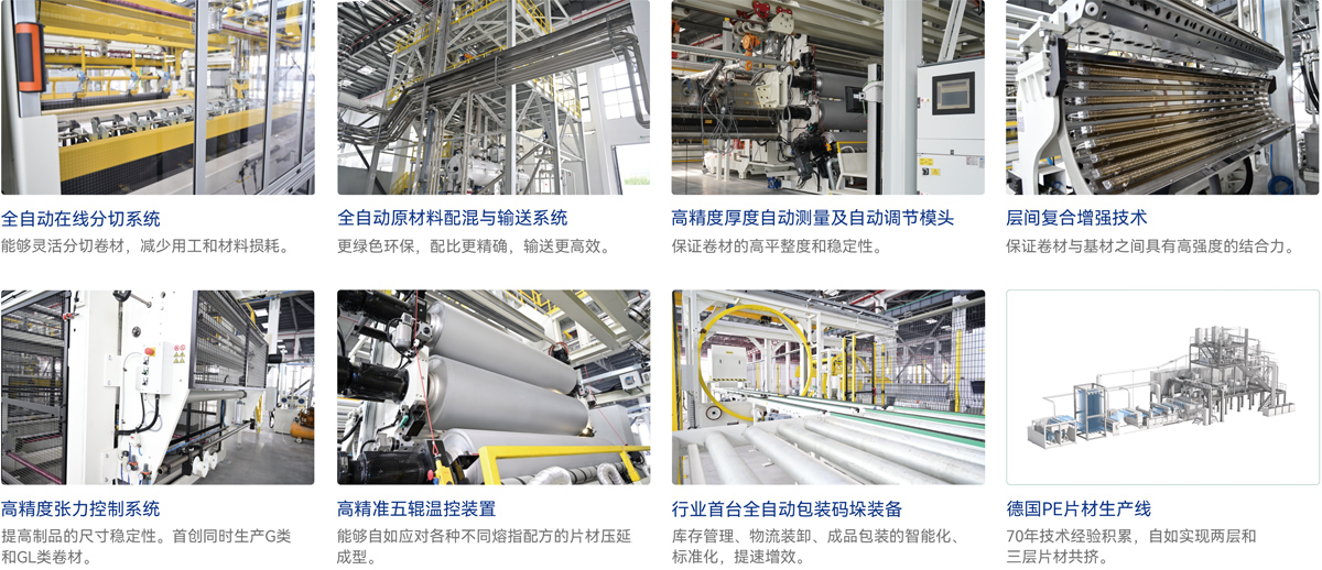 • 生产玻纤内增强型 (G类)、玻纤内增强复合背衬型 (GL类)卷材